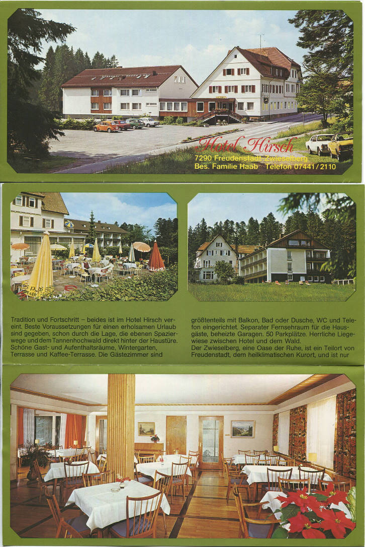 Freudenstadt 1980 - Hotel Hirsch Besitzer Familie Haab - Faltblatt mit 13 Abbildungen - beiliegend Zimmer- und Pensionspreise (EP6564y) |