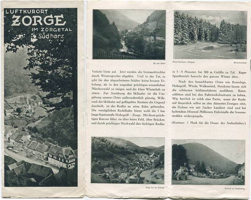 Zorge im Zorgetal 30er Jahre - 8 Seiten mit 16 Abbildungen - Werbung - Preisangaben - unterer Rand leicht ausgefranst (EP507y) |