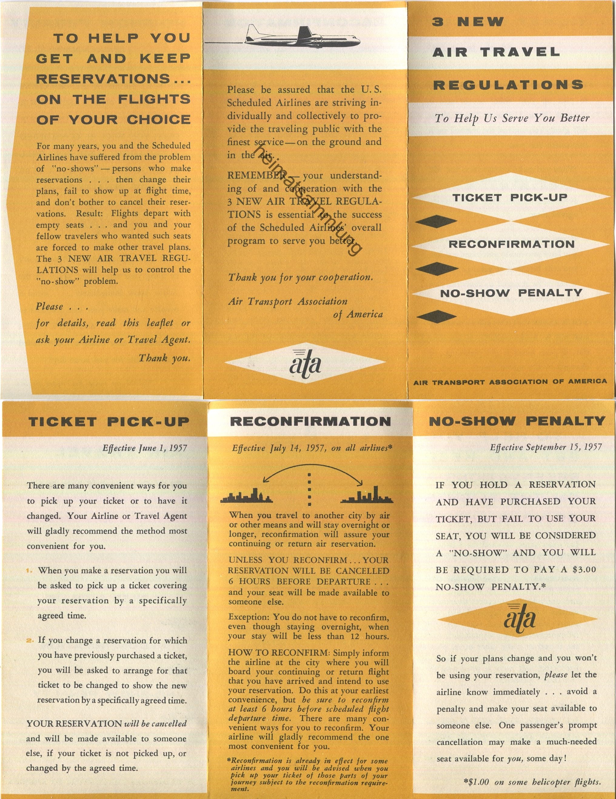 3 new air travel regulations - air transport association of america - Faltblatt Juni 1957 (G63072y) |