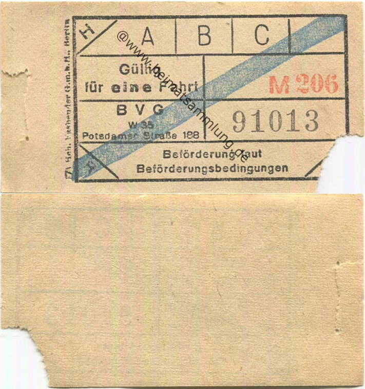 Berlin - BVG Teilstrecken-Fahrschein 15Pf. 1940 (G33037y) |