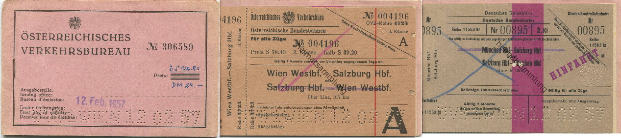 Österreich - Österreichisches Verkehrsbüro - Fahrkarte 2. Klasse 1957 - Inhalt: Wien Westbf.-Salzburg Hbf. Hin- und Rückfahrt- Salzburg-München Hin- und Rückfahrt - Schnellzugzuschlag (G33079y) |
