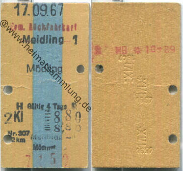 Fahrkarte - Meidling 2 - Mödling 1967 (G42736y) |