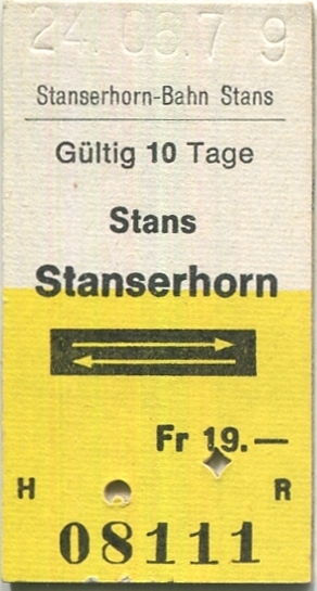 Stranserhorn-Bahn Stans - Stans Stanserhorn retour - Fahrkarte 1979 (G63106y) |
