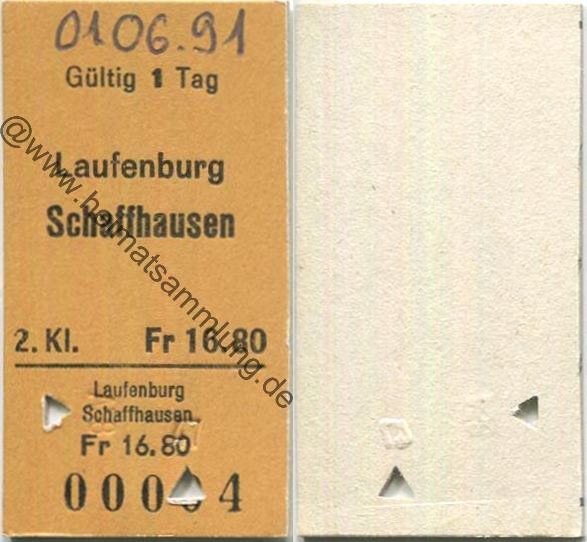 Laufenburg Schaffhausen einfach - Fahrkarte 1991 (G62846y) |
