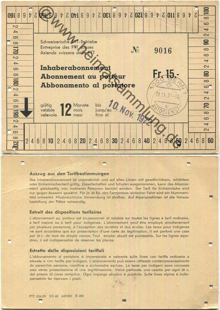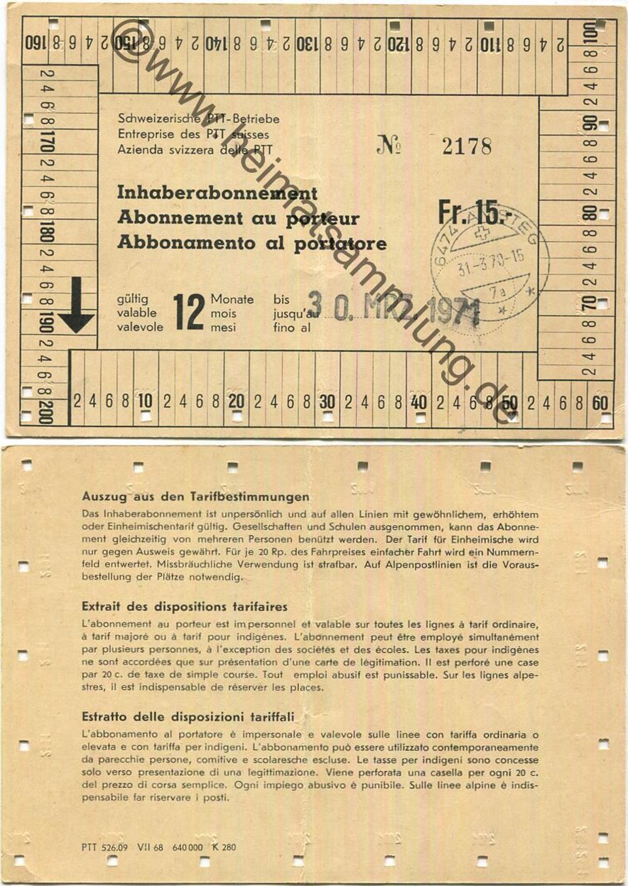 Schweizerische PTT-Betriebe - Innhaberabonnement - Fahrschein 1971 (G62817y) |