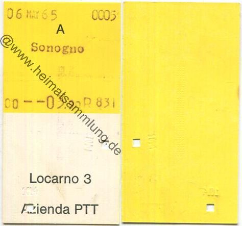 PTT-Betriebe Sonogno - Locarno - Postauto Fahrschein 1965 (G62819y) |