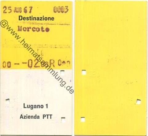 PTT-Betriebe Morcote - Lugano - Postauto Fahrschein 1967 (G62822y) |