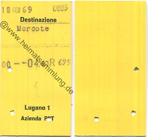 PTT-Betriebe Morcote - Lugano - Postauto Fahrschein 1969 (G62823y) |