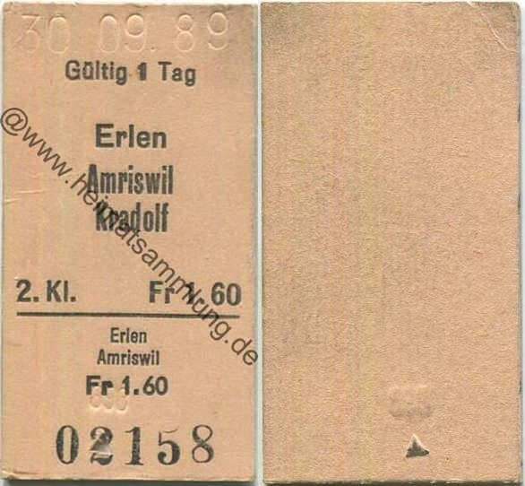 Erlen Amriswil Kradolf einfach - Fahrkarte 1989 (G62862y) |