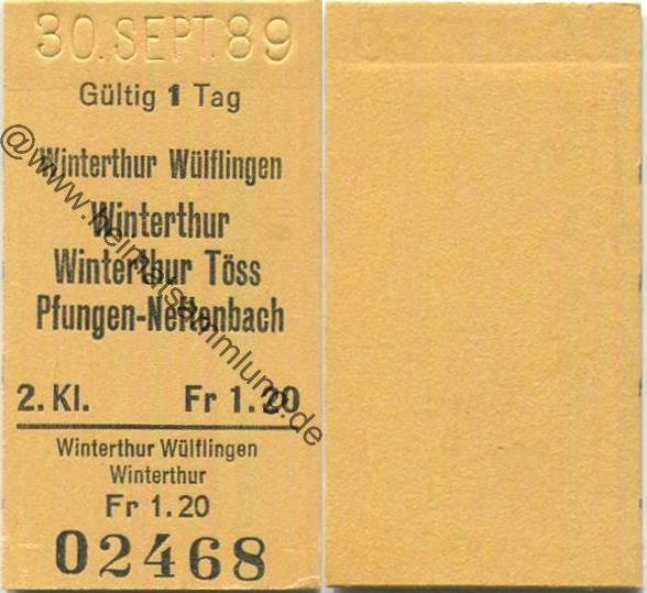 Winterthur Wülflingen Winterthur Winterthur Töss Pfungen-Neftenbach einfach - Fahrkarte 1989 (G62866y) |