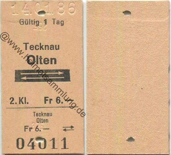 Tecknau Olten retour - Fahrkarte 1986 (G62874y) |