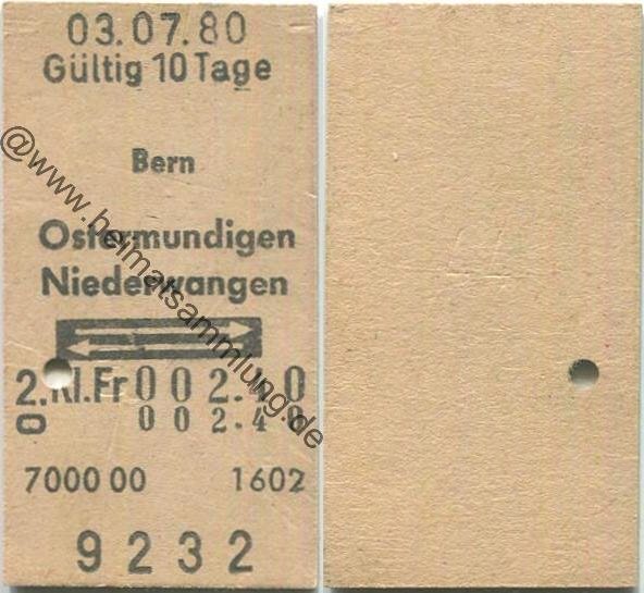 Bern Ostermundigen Niederwangen retour - Fahrkarte 1980 (G62875y) |