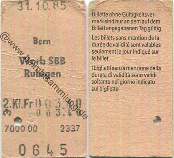 Bern Worb SBB Rubigen einfach - Fahrkarte 1985 (G62876y) |