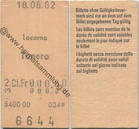 Locarno Tenero einfach - Fahrkarte 1982 (G62877y) |