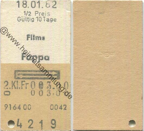 Flims Foppa retour - Fahrkarte 1/2 Preis 1982 (G62881y) |