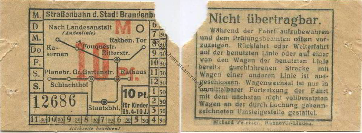 Stadt Brandenburg - Strassenbahn der Stadt Brandenburg - Fahrschein (E49687y) |