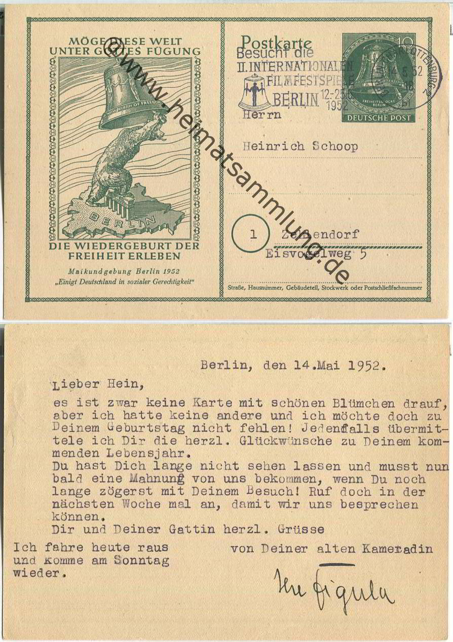 Rennen Berlin 1952" mit vs. grüner Abb. "Motorradfahrer und Rennwagen auf