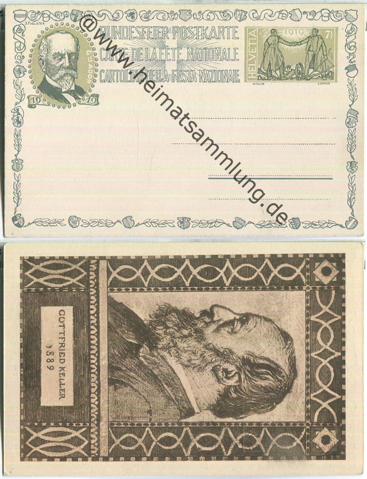 Bundesfeier-Postkarte 1919 - 7 1/2 Cts - Gottfried Kellers 1889 - Zugunsten der Schweizerischen Schillerstiftung und des Unterstützungsfonds für schweiz. bildende Künstler (G54190y) |