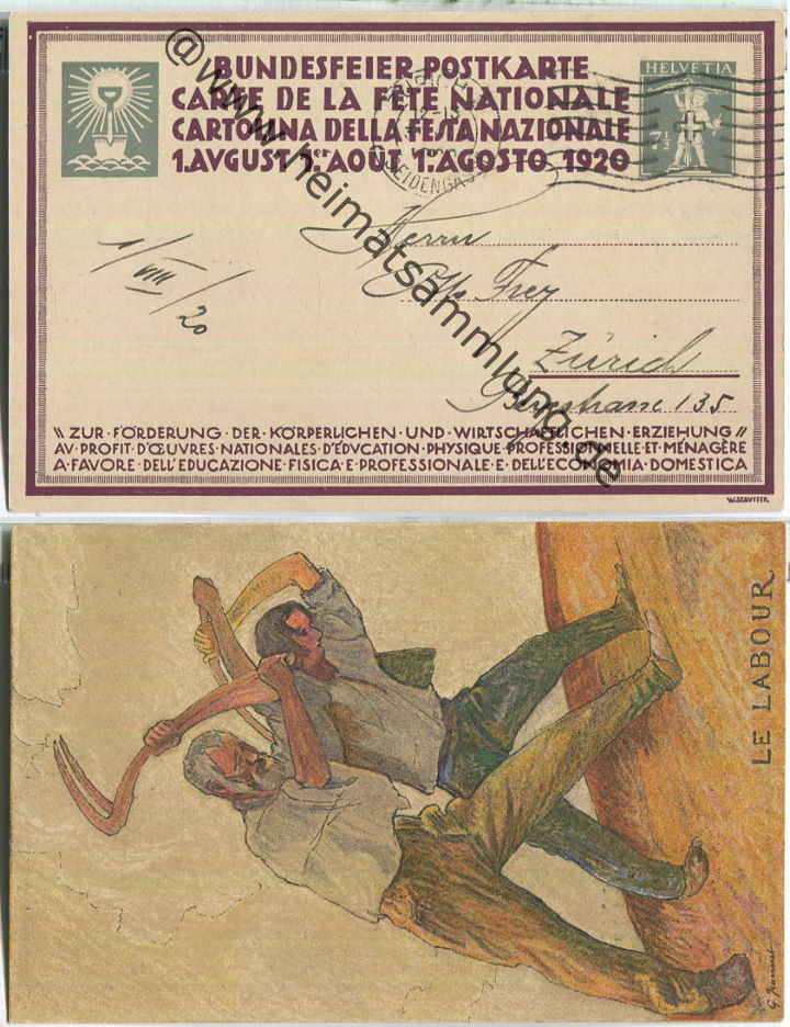 Bundesfeier-Postkarte 1920 - 7 1/2 Cts - G. Jeanneret Le Labour - Zugunsten der Förderung körperlicher uns wirtschaftlicher Erziehung (G54191y) |