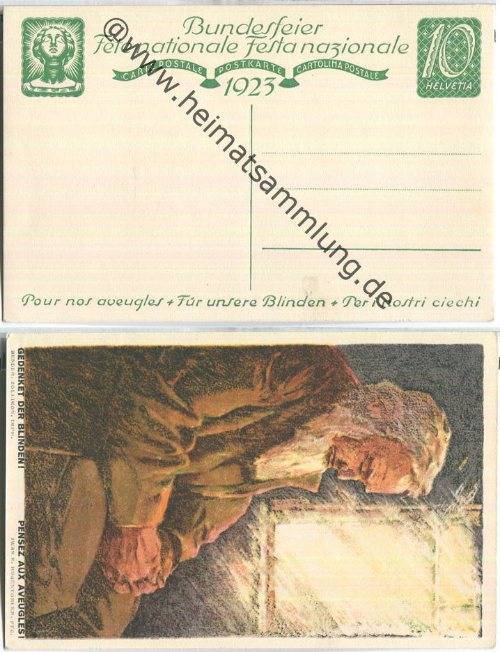 Bundesfeier-Postkarte 1923 - 10 Cts - J.E. Hugentobler Blinder Mann - Zugunsten der Blindenfürsorge (G54390y) |
