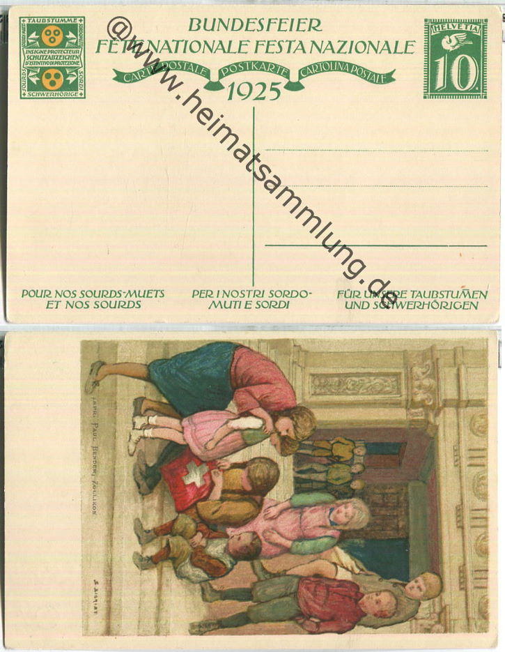Bundesfeier-Postkarte 1925 - 10 Cts - S. Sigrist Kindergruppe - Zugunsten der Taubstummen - gelaufen (G54399y) |