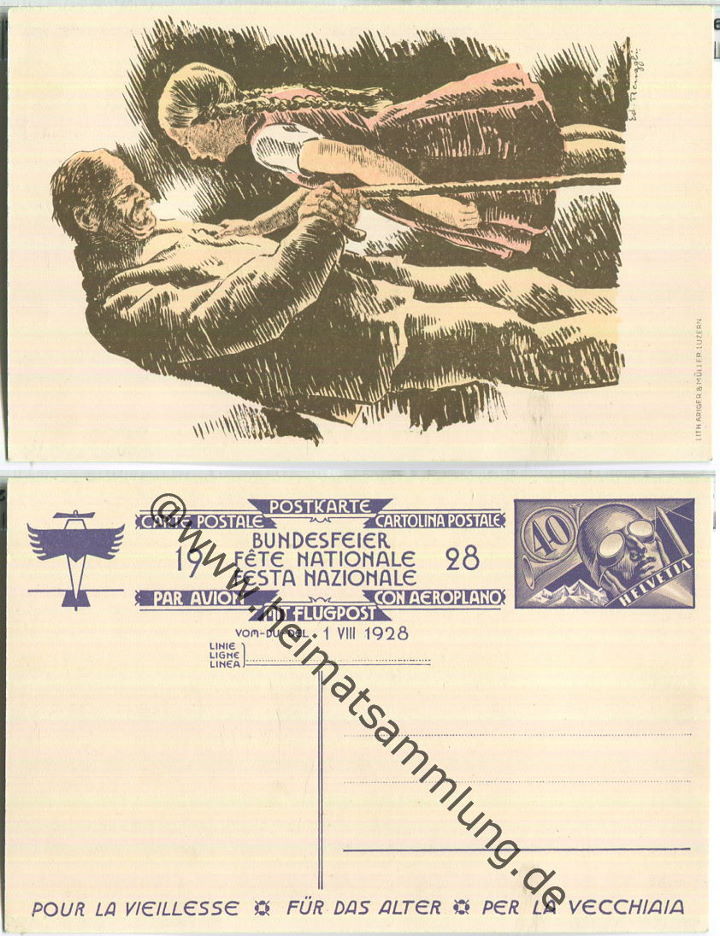 Bundesfeier-Postkarte 1928 - 10 Cts - Prof. Ed. Renggli Alter Mann mit Mädchen - Zugunsten des Alters - gelaufen (G54419y) |