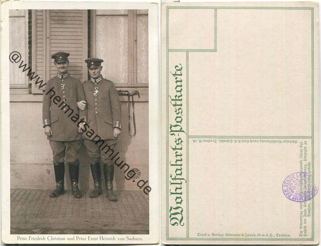 Prinz Friedrich Christian und Prinz Ernst Heinrich von Sachsen - Wohlfahrts-Postkarte - Verlag Römmler & Jonas Dresden (E38143y) |
