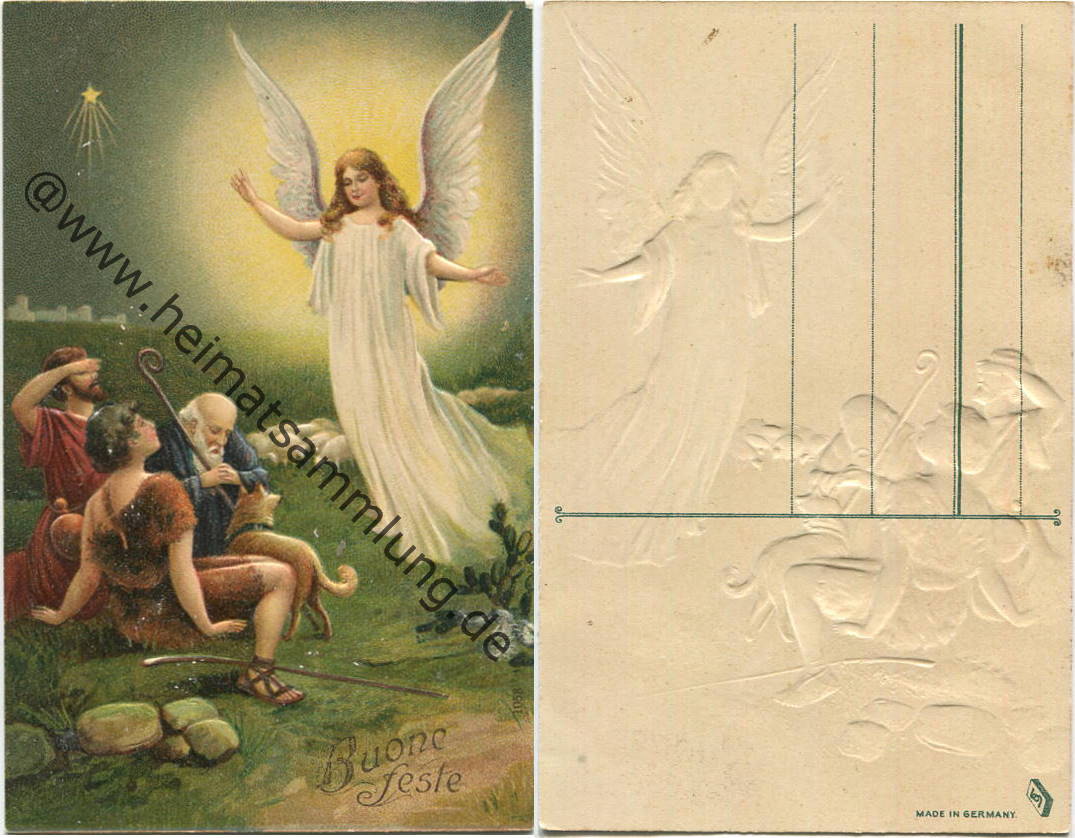 Buone Feste - Engel - Hirten - Schafe - Prägedruck (G51322y) |