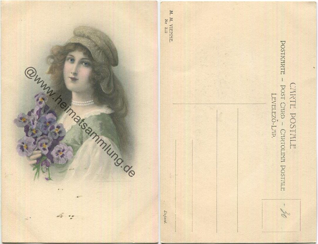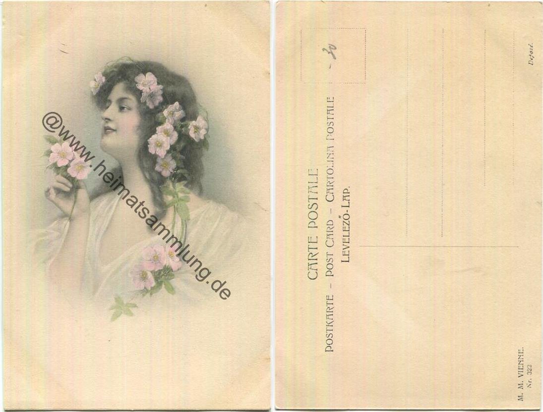 Frau mit Blumen im Haar - Verlag M. M. Vienne (E35011y) |