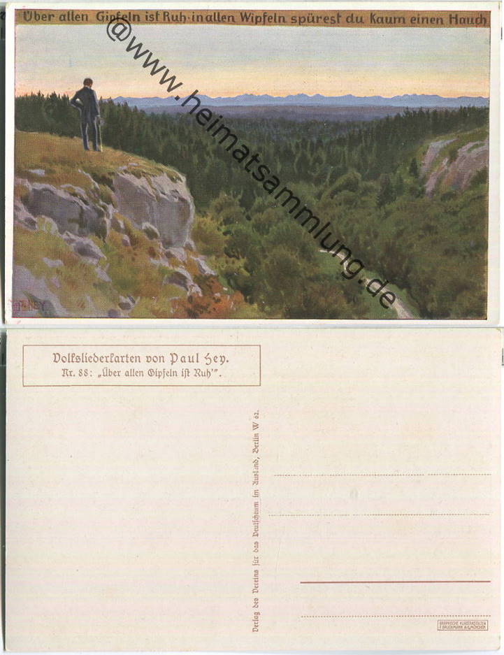 Paul Hey - Volksliederkarte Nr. 88 - Über allen Gipfeln ist Ruh' - Künstlerkarte 20er Jahre - Verlag Verein für das Deutschtum im Ausland Berlin (G45369y) |