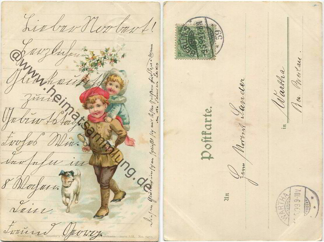 Kinder - Hund - Verlag Theo Stroefer Nürnberg - Aquarell-Postkarte Serie VII No. 5470 (E12578y) |