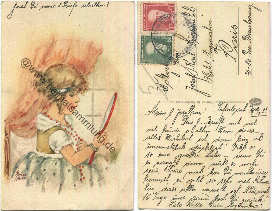 Mädchen - signiert Erna Maison Kurt - Printed in Switzerland (E34695y) |