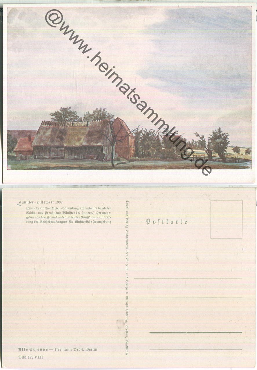 Alte Scheune - Künstler-Hilfswerk 1937 - Hermann Drost Berlin - Bild 47/VIII - Verlag Wilhelm und Bertha von Baensch Stiftung Dresden (E89390y) |