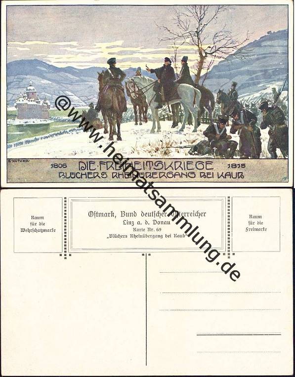 Ostmark - Bund deutscher Österreicher - Die Freiheitskriege - E. Kutzer - Blüchers Rheinübergang bei Kaub (E89876y) |