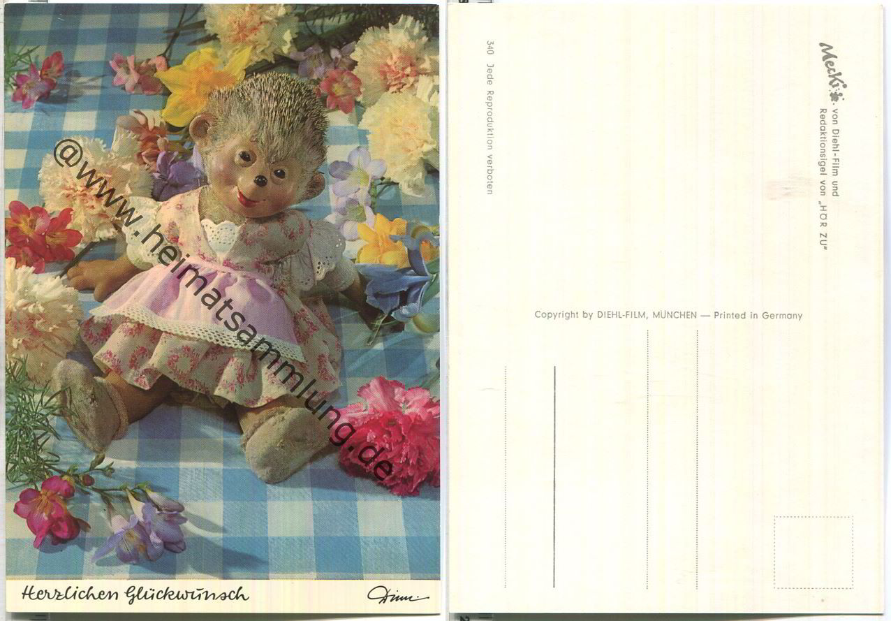 Mecki - Herzlichen Glückwunsch - Nr. 340 - Diehl-Film München - Printed in Germany (G60005y) |
