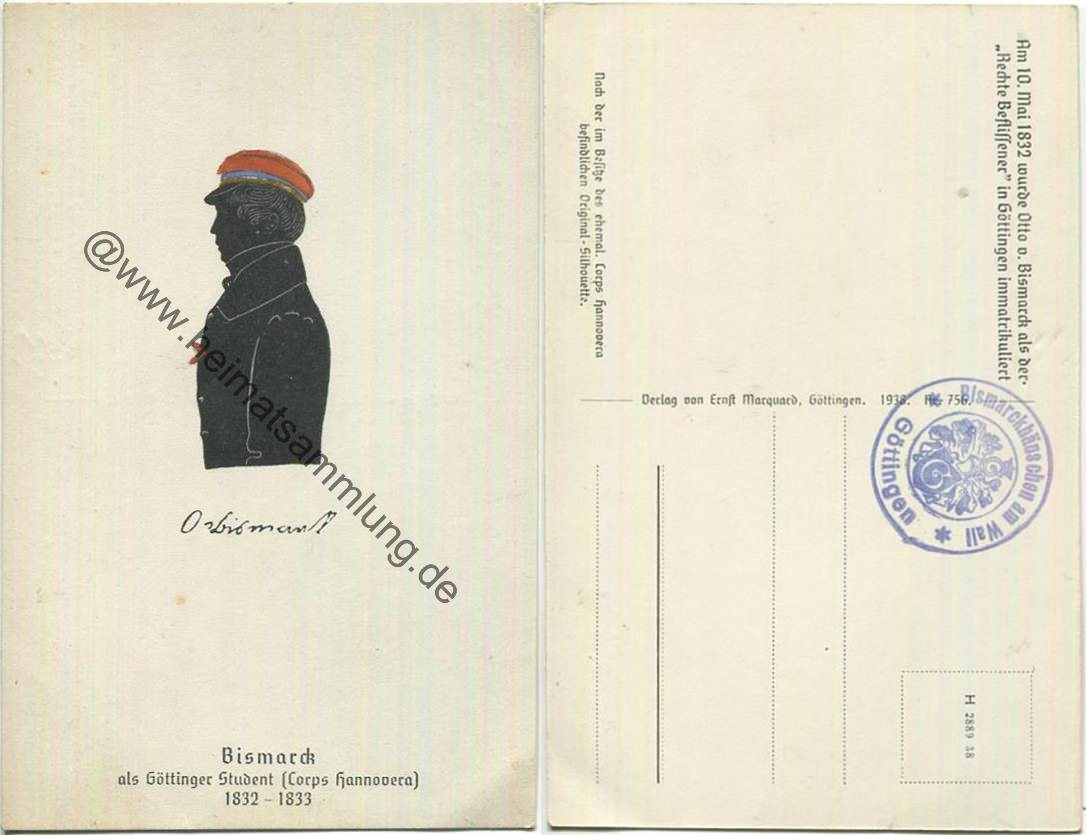 Bismarck als Göttinger Student - Corps Hannovera 1832 - 1833 - Verlag Ernst Marquard 1938 (E34898y) |