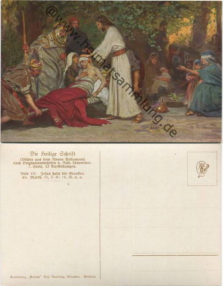 Die Heilige Schrift - Jesus heilt die Kranken - Künstlerkarte R. Leinweber ca. 1910 - Verlag Palette Max Kamberg München (G33423y) |