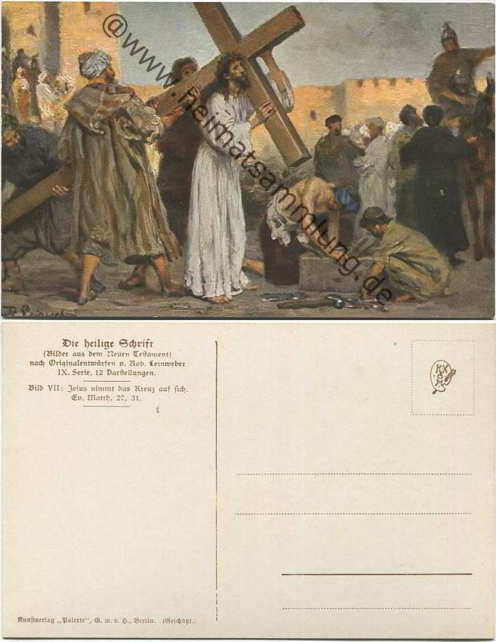 Die Heilige Schrift - Jesus nimmt das Kreuz auf sich - Künstlerkarte R. Leinweber ca. 1910 - Verlag Palette GmbH Berlin (G33446y) |