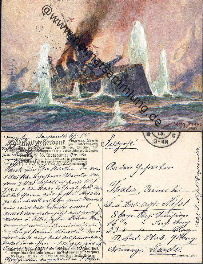 Künstlerkarte Willy Stöwer - Seegefecht in der Nordsee - Kolonialkriegerdank - Feldpost - Stempelspur (G0604y) |
