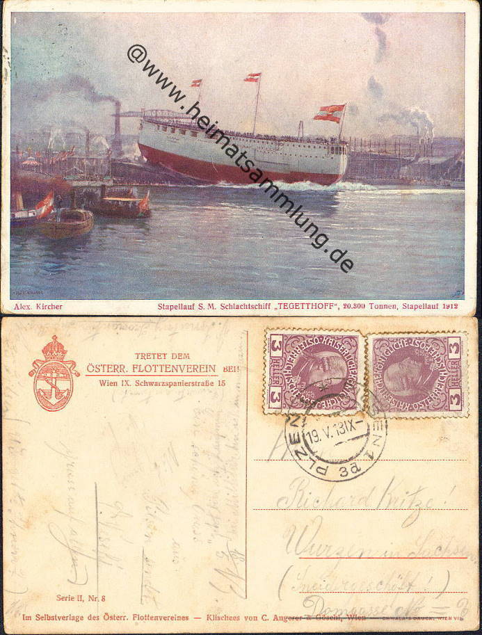 S. M. Schlachtschiff Tegetthoff - Österreichischer Flottenverein - Alex Kircher Selbstverlag des Österreichischen Flottenverlags - Gebrauchsspuren (G13863y) |