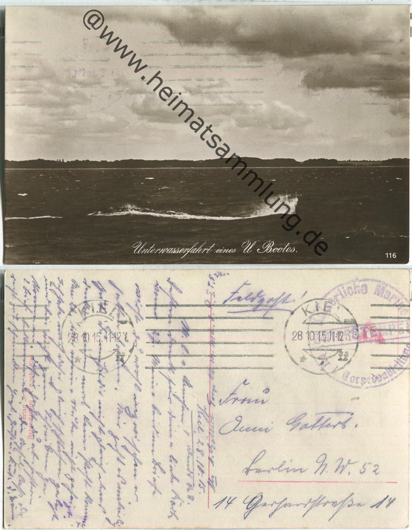 Unterseeboot - U-Boot - Unterwasserfahrt - Foto-Ansichtskarte - Briefstempel Kaiserliche Marine I. Torpedoabteilung - Verlag K. Koch Kiel (G37383y) |