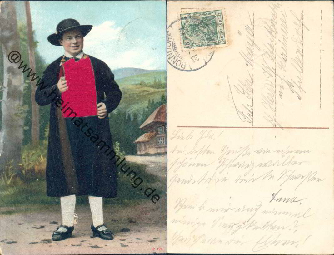 Badische Volkstracht aus dem Gutachtal - mit Samt beklebter Prägedruck - leichte Gebrauchsspuren (G10388y) |