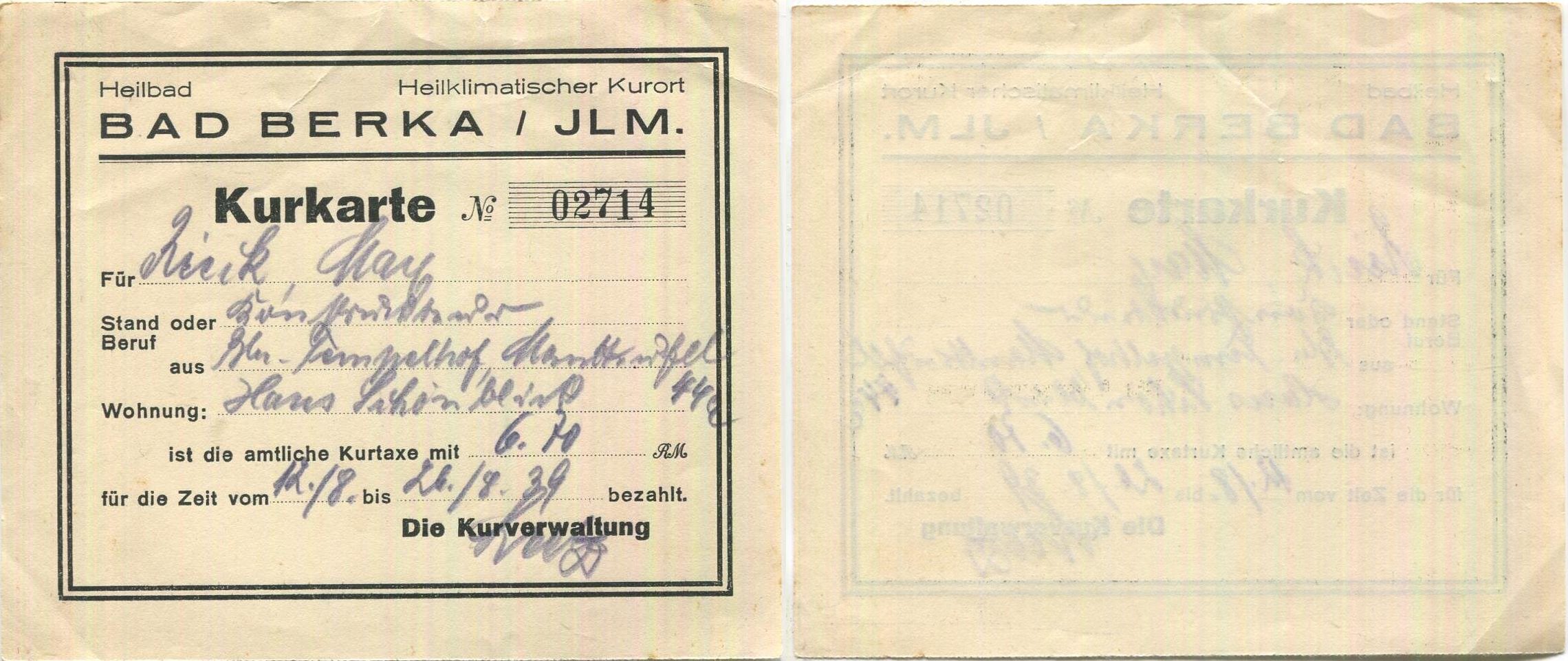 Heilbad Bad Berka - Kurkarte 1939 (G62757y) |