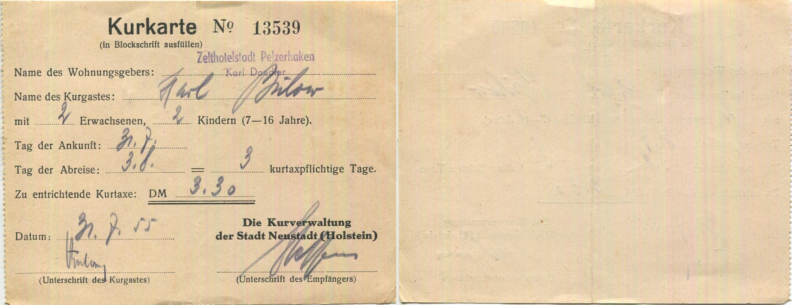 Stadt Neustadt in Holstein - Kurkarte 1955 - Zeltstadt Pelzerhaken (G62758y) |