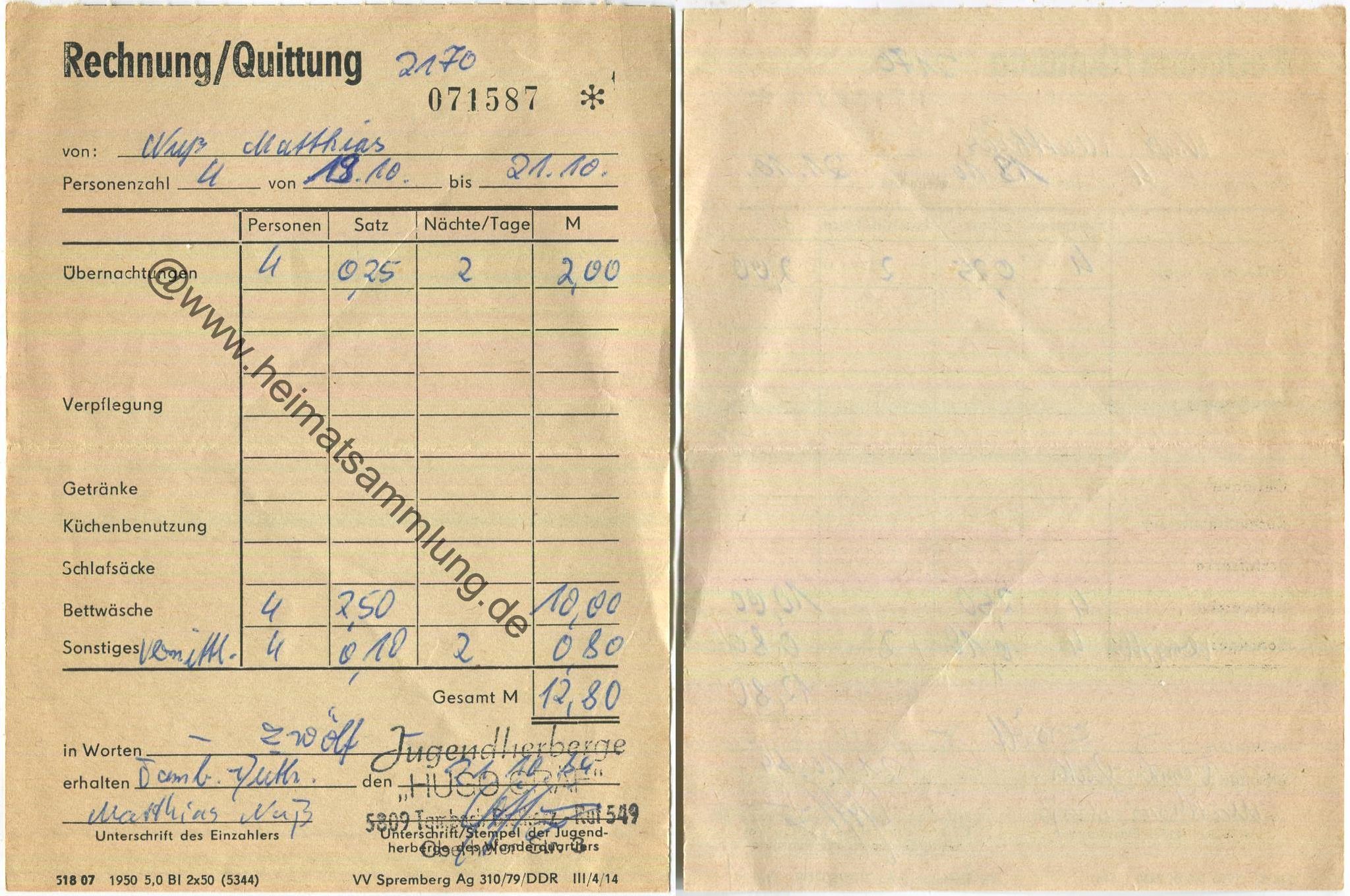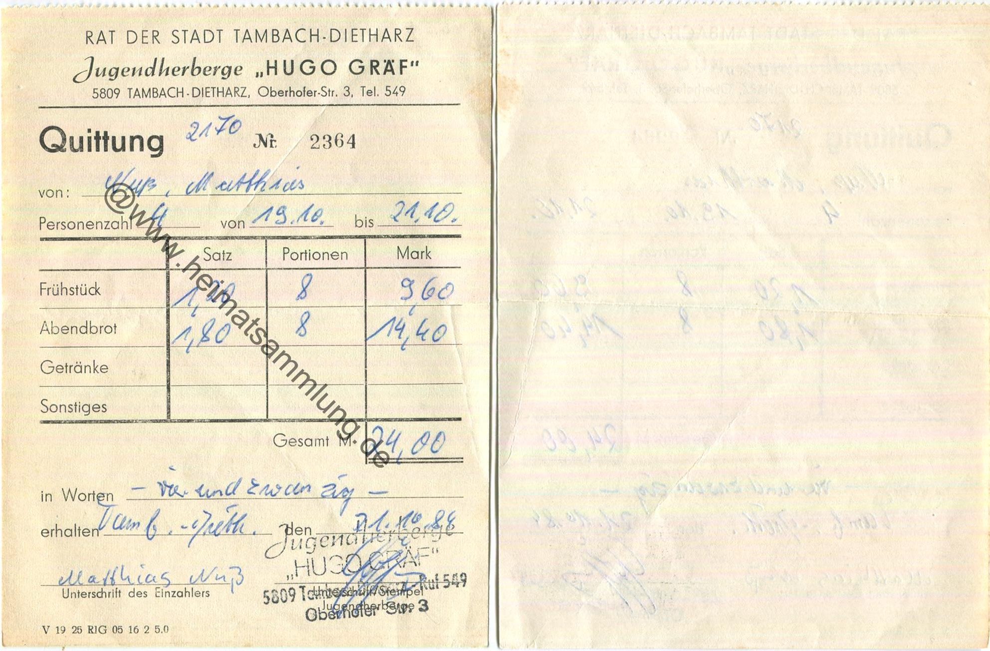 Rechnung/Quittung - Jugendherberge Hugo Gräf Tambach-Dietharz 1984 (G62759y) |