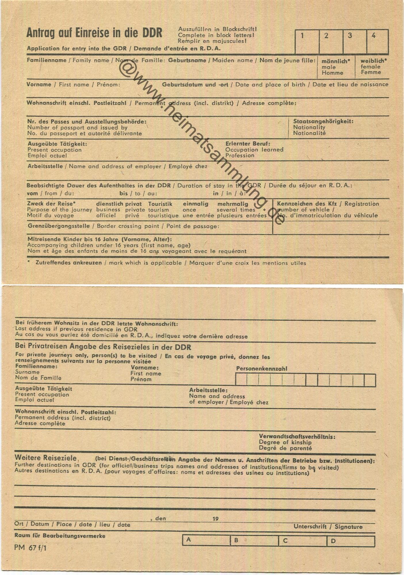 Antrag auf Einreise in die DDR - Blankokarte (G62762y) |
