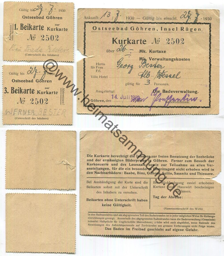 Ostseebad Göhren - Insel Rügen - Kurkarte 1930 mit 2 Beikarten (G62754y) |