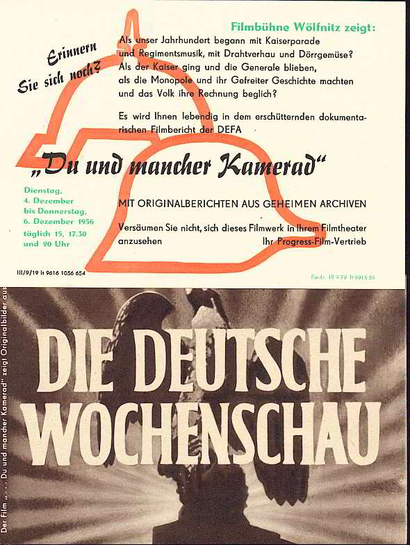 1956 Die Deutsche Wochenschau - Der Film ... zeigt Dokumente aus geheimen Archiven - Faltblatt mit 8 Abbildungen (EP1786) |
