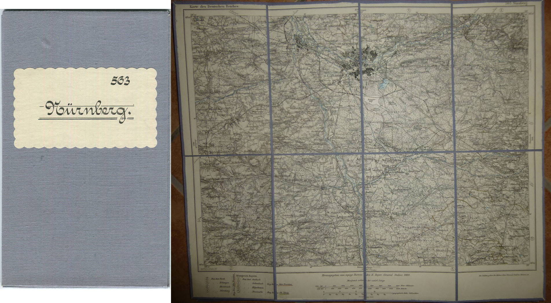 Topografische Karte 563 Nürnberg - Karte des Deutschen Reiches 1:100'000 33cm x 40cm auf Leinen gezogen - Herausgegeben vom topogr. Bureau des K. Bayer. General-Stabes 1889 - Nachträge 1904 (EP8286y) |