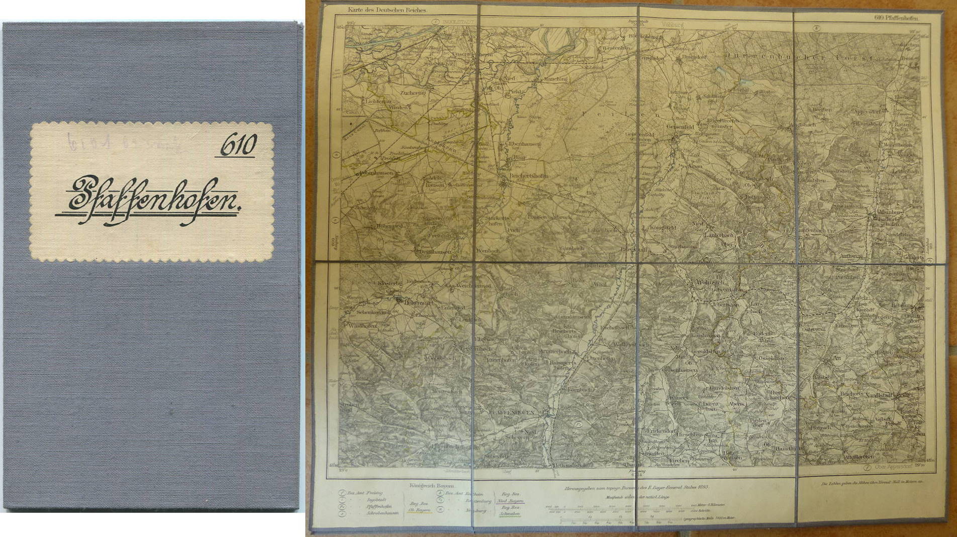 Topografische Karte 610 Pfaffenhofen - Karte des Deutschen Reiches 1:100'000 33cm x 40cm auf Leinen gezogen - Herausgegeben vom topogr. Bureau des K. Bayer. General-Stabes 1893 (EP8315y) |